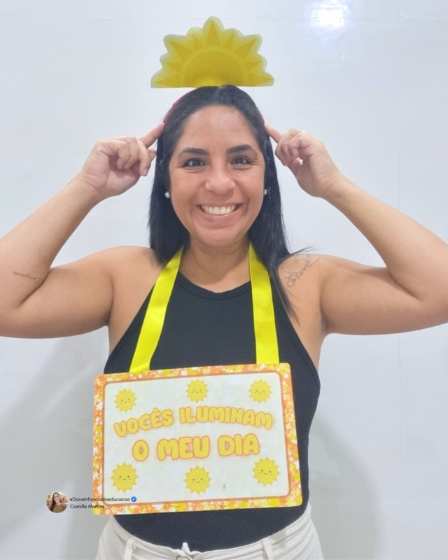 Com um design alegre no tema sol, o kit transmite a mensagem de que a presença dos alunos ilumina o dia da professora, fortalecendo vínculos e criando memórias afetivas na sala de aula.