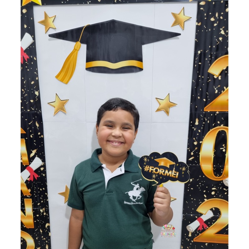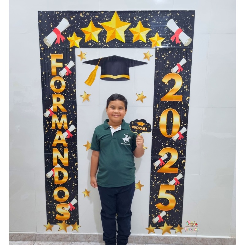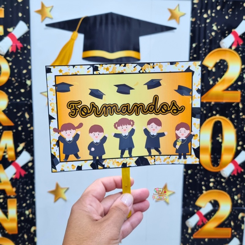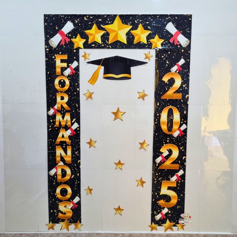✨Celebre este momento especial com o nosso painel decorativo de formatura, perfeito para escolas e sessões de fotos. Com design elegante em preto e dourado e traz elementos simbólicos como estrelas, diplomas e o capelo de formatura representando conquista e sucesso, para homenagear os formandos 2025.