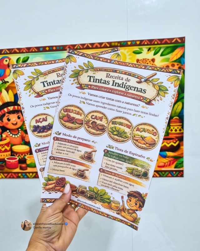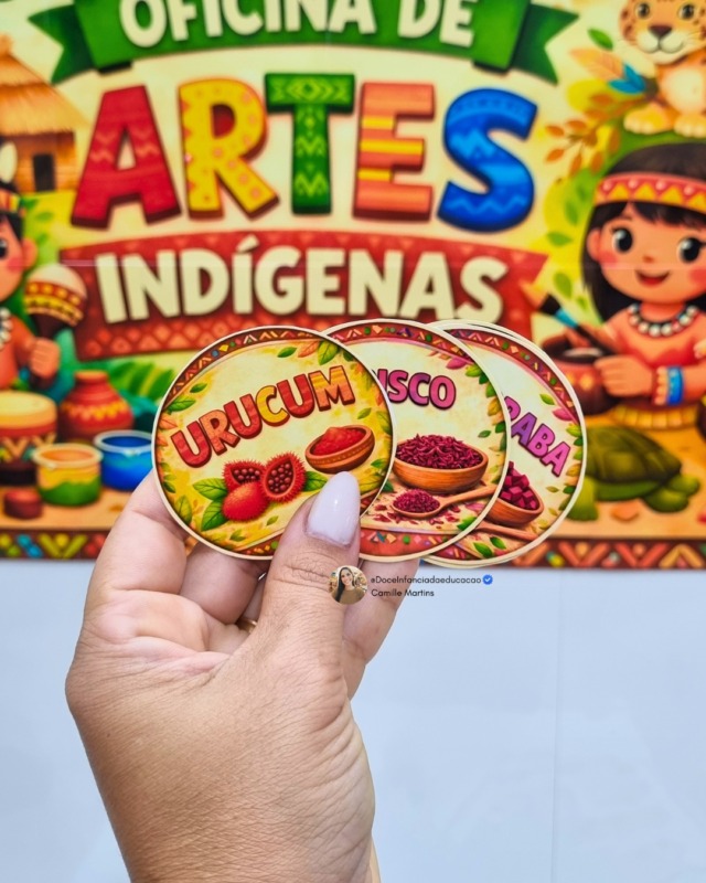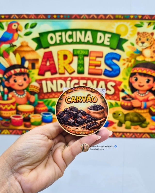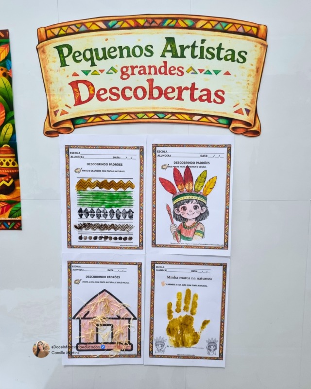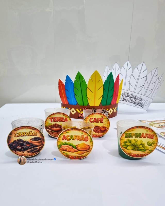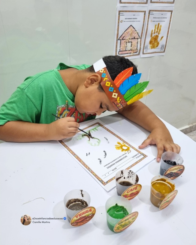 Com elementos inspirados na cultura indígena, a atividade convida os alunos a explorarem diferentes materiais naturais, estimulando a curiosidade, a coordenação motora e a valorização da diversidade cultural.